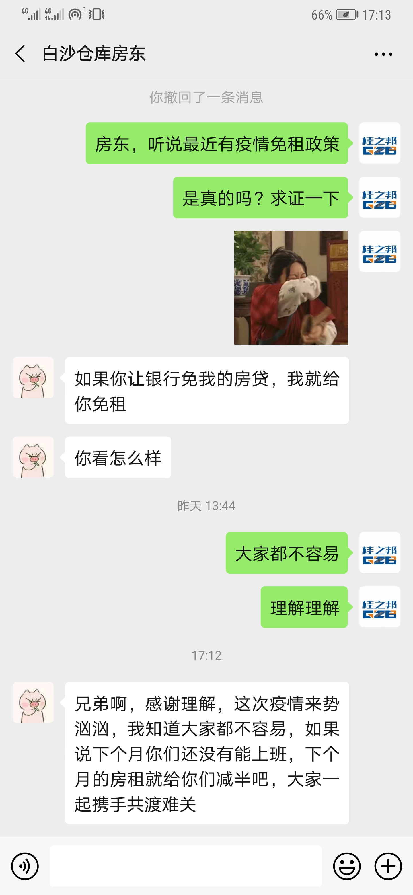 當然,也有很多“好房東”主動給租客減免租金,就因為類似的新聞不斷地出現(xiàn),也有很多工程機械行業(yè)的業(yè)主開始向房東詢問,工程機械行業(yè)能否減免租金呢?這不,桂之邦工程機械負責人也因為這個事情去詢問了房東,雖然房東也很艱難,沒想到房東能夠提出房租減半,也是個“好房東”了。