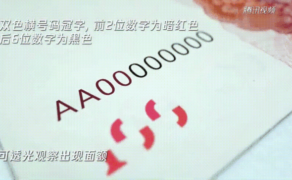雙色橫號(hào)碼冠字,前2位數(shù)字為暗紅色